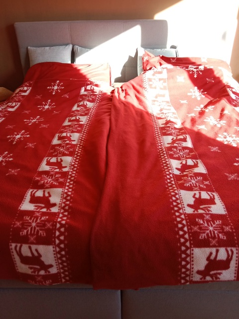 Mijn bed is al volledig in de kerstfeer en gedekt voor twee....hihi.wie vult deze plaats op?
